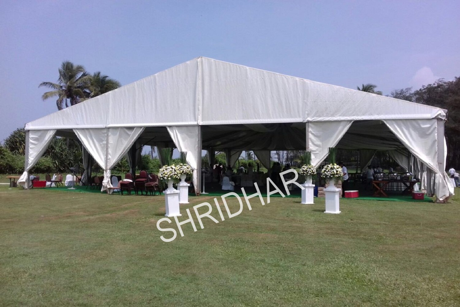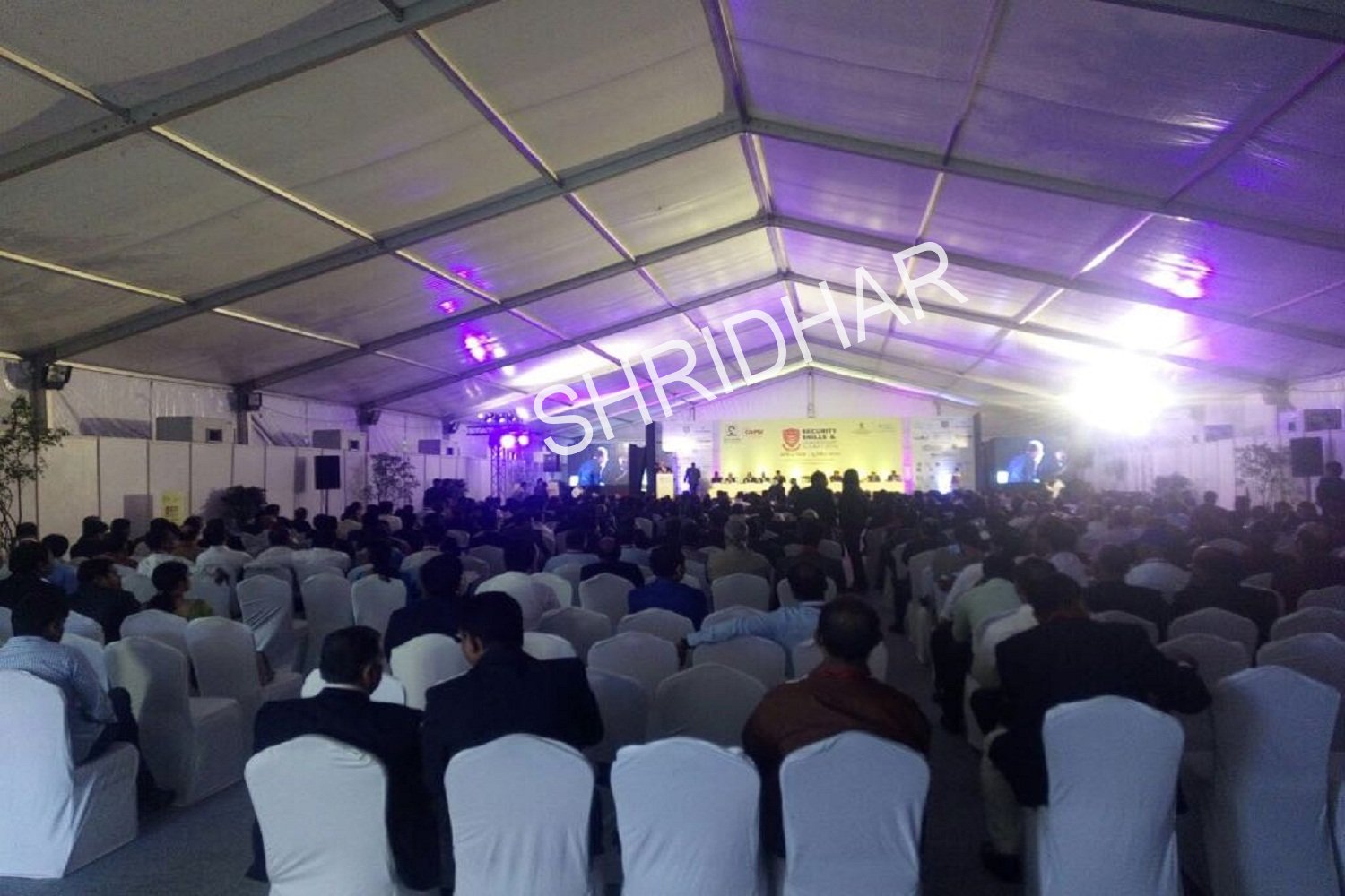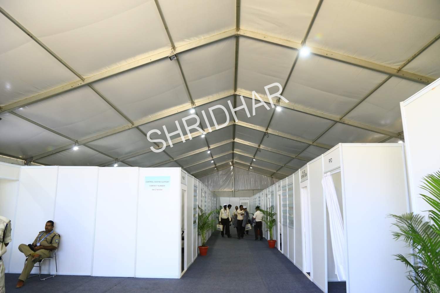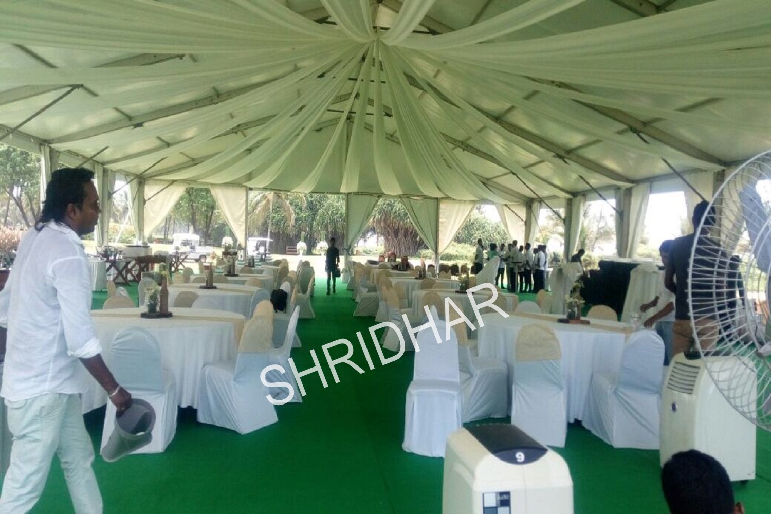 Shridhar Tent House is a trusted 36-year old Tent House Dealer and Tent House Supplier in Bangalore. Shridhar Tent House supplies chairs, canopies, aluminium tents, shamianas, shamiyana tents, AC tents, German tents, Aluminium Hanger tents, pagoda tents, exhibition stalls, Octanorm exhibition stalls, super structures, mega hangers, wooden stages, pandals, and waterproof sheds for rent for functions, exhibitions, events, conventions, and convention centers in and around Bangalore, Karnataka.