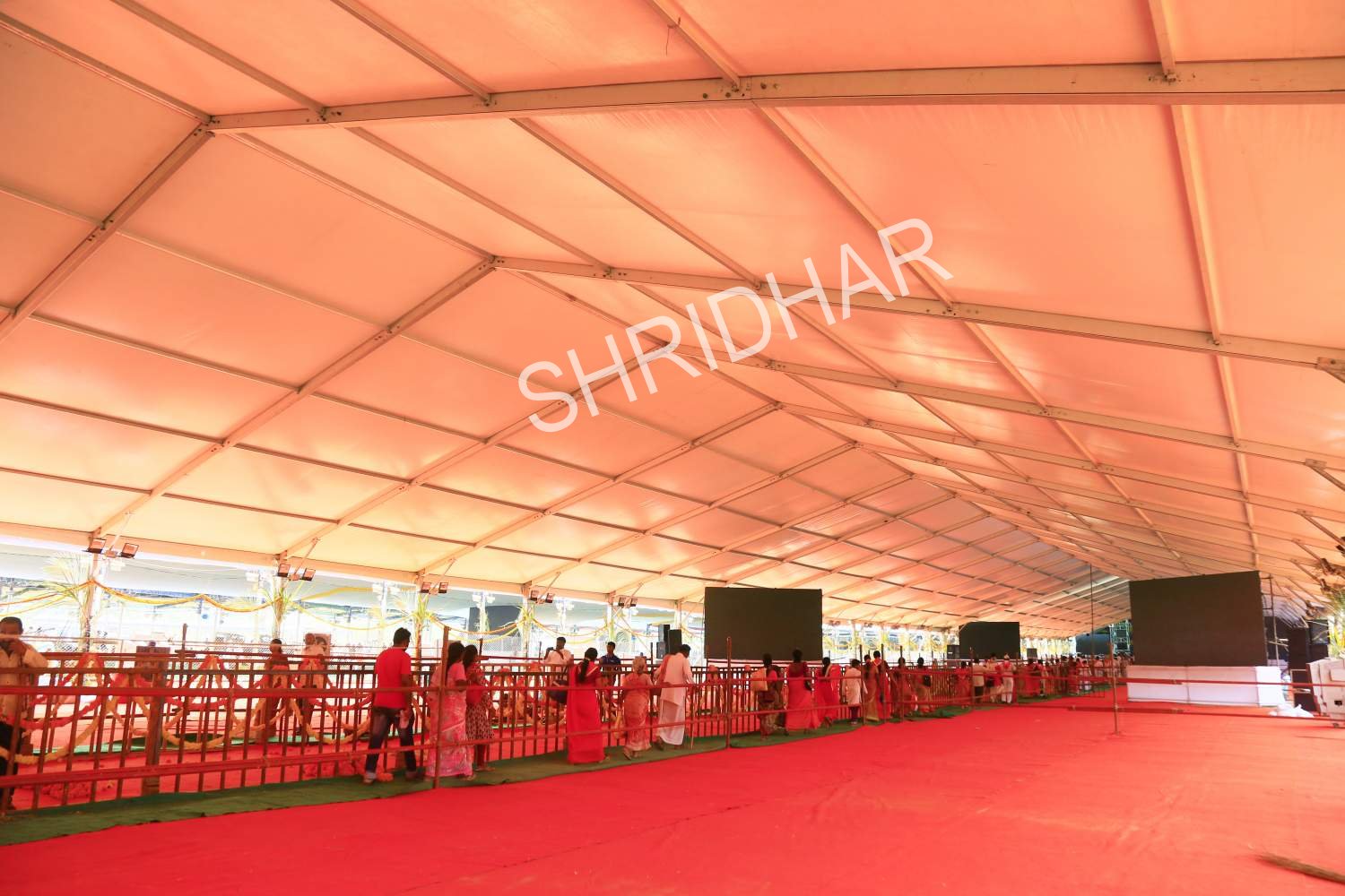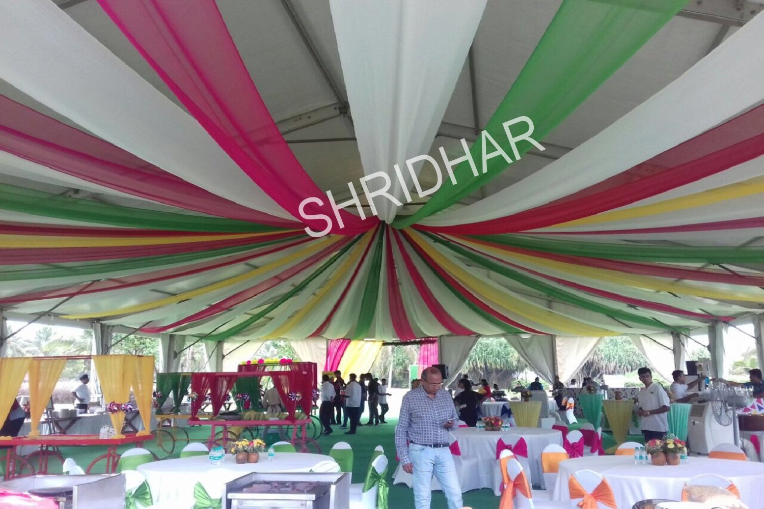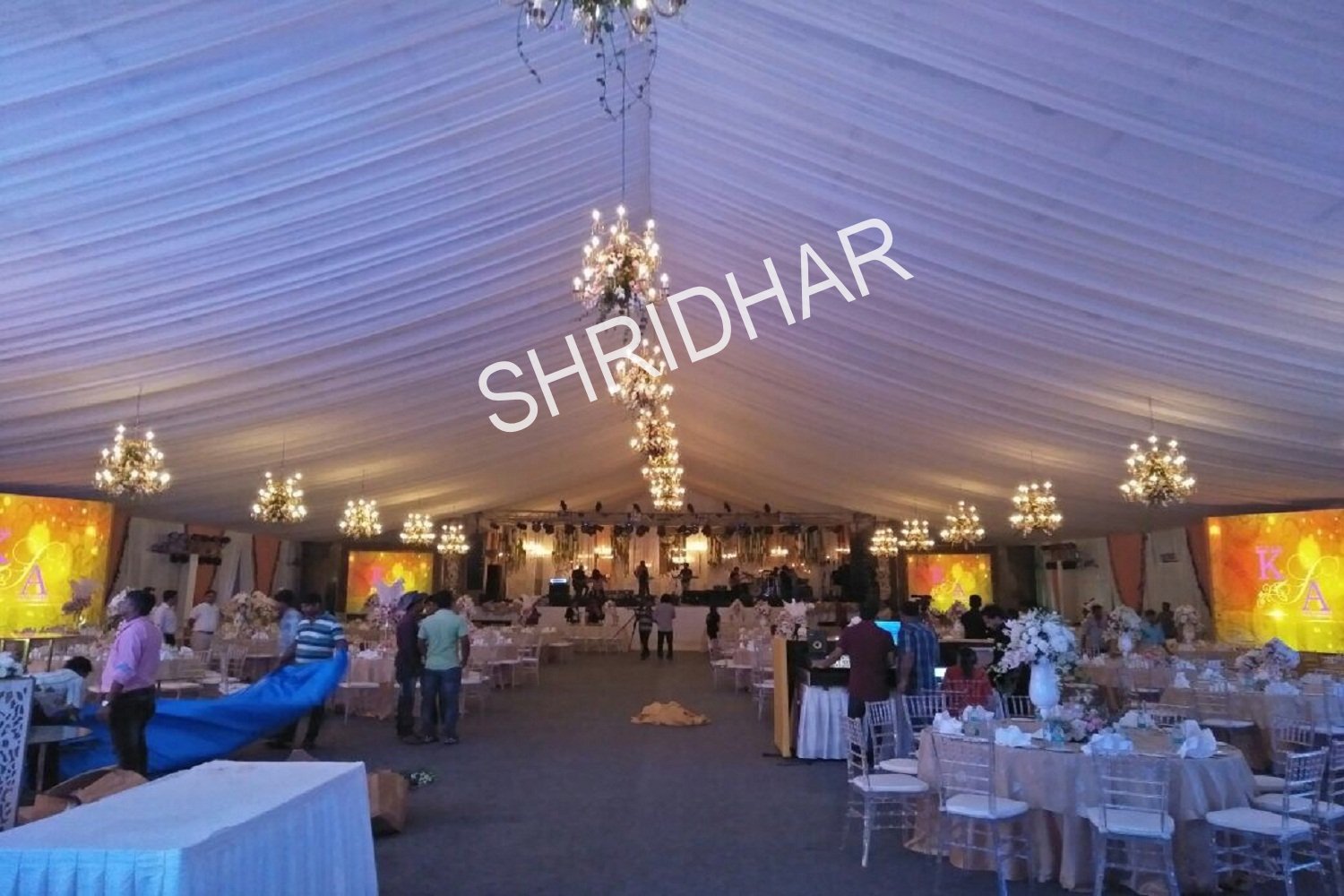 Shridhar Tent House is a trusted 36-year old Tent House Dealer and Tent House Supplier in Bangalore. Shridhar Tent House supplies chairs, canopies, aluminium tents, shamianas, shamiyana tents, AC tents, German tents, Aluminium Hanger tents, pagoda tents, exhibition stalls, Octanorm exhibition stalls, super structures, mega hangers, wooden stages, pandals, and waterproof sheds for rent for functions, exhibitions, events, conventions, and convention centers in and around Bangalore, Karnataka.