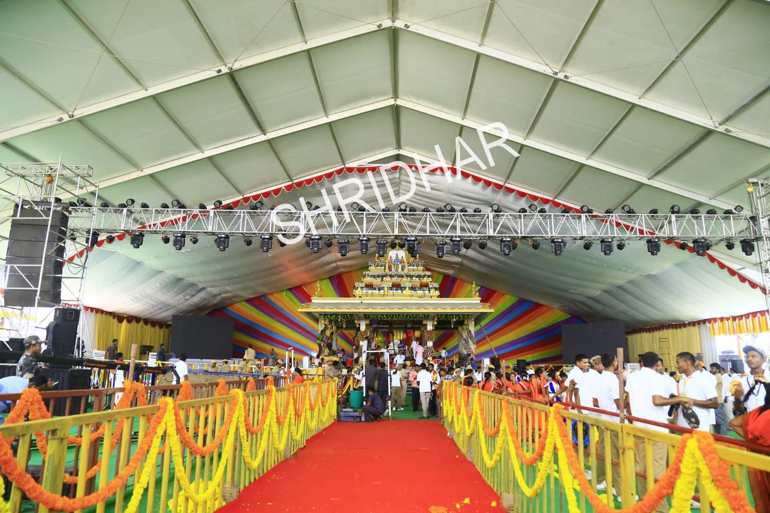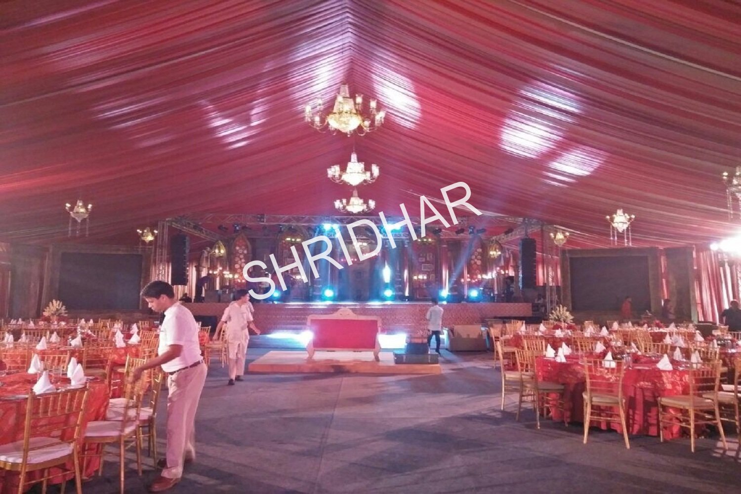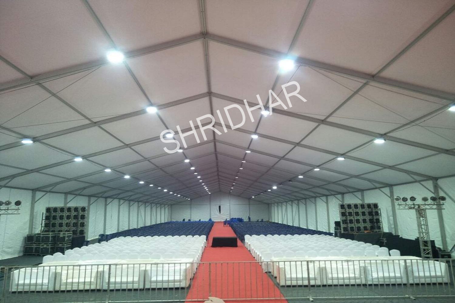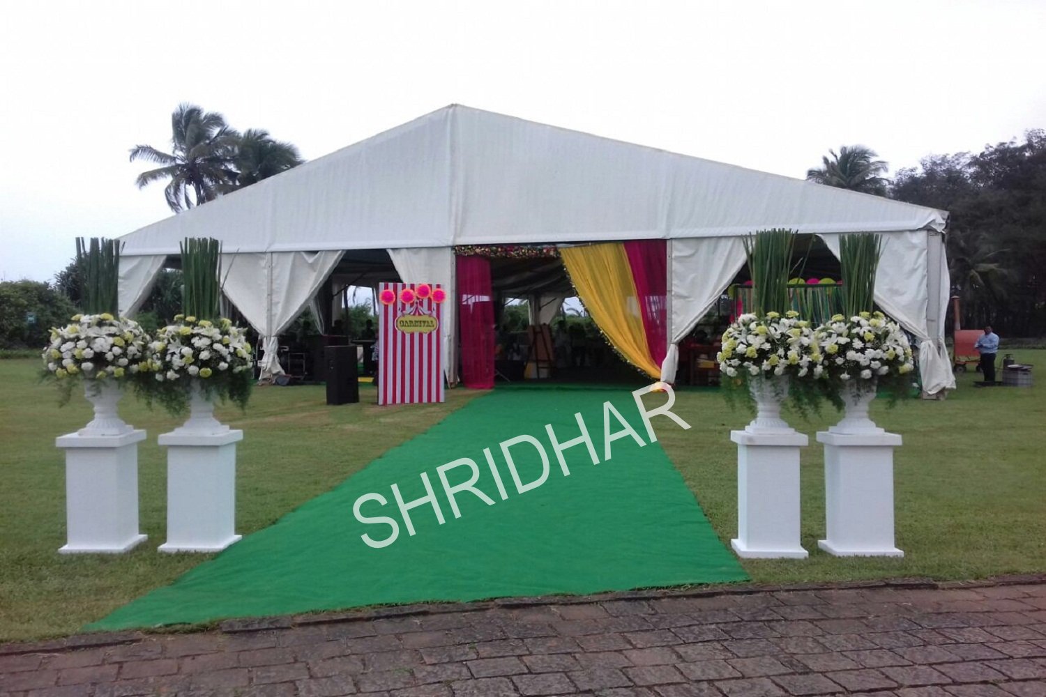 Shridhar Tent House is a trusted 36-year old Tent House Dealer and Tent House Supplier in Bangalore. Shridhar Tent House supplies chairs, canopies, aluminium tents, shamianas, shamiyana tents, AC tents, German tents, Aluminium Hanger tents, pagoda tents, exhibition stalls, Octanorm exhibition stalls, super structures, mega hangers, wooden stages, pandals, and waterproof sheds for rent for functions, exhibitions, events, conventions, and convention centers in and around Bangalore, Karnataka.